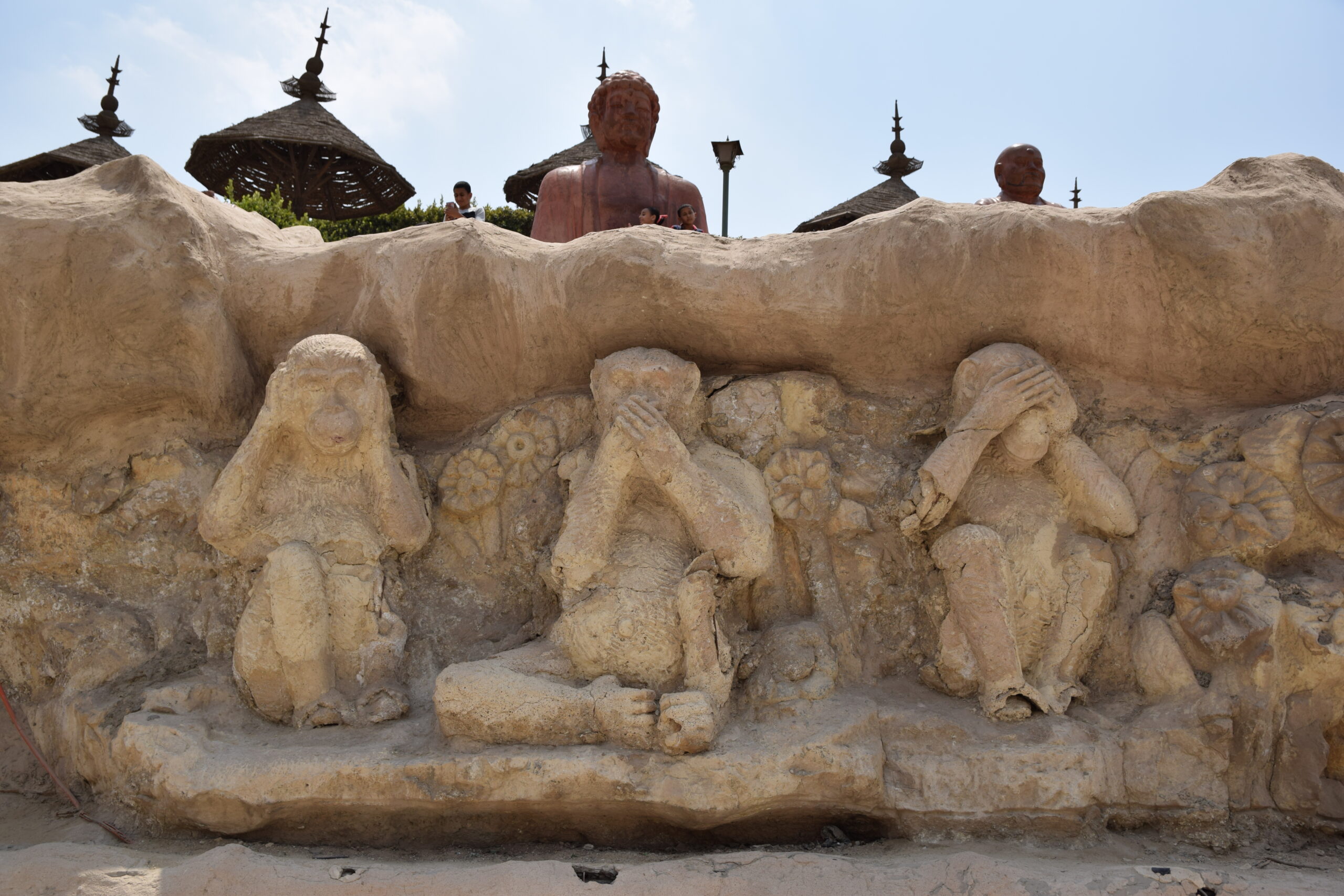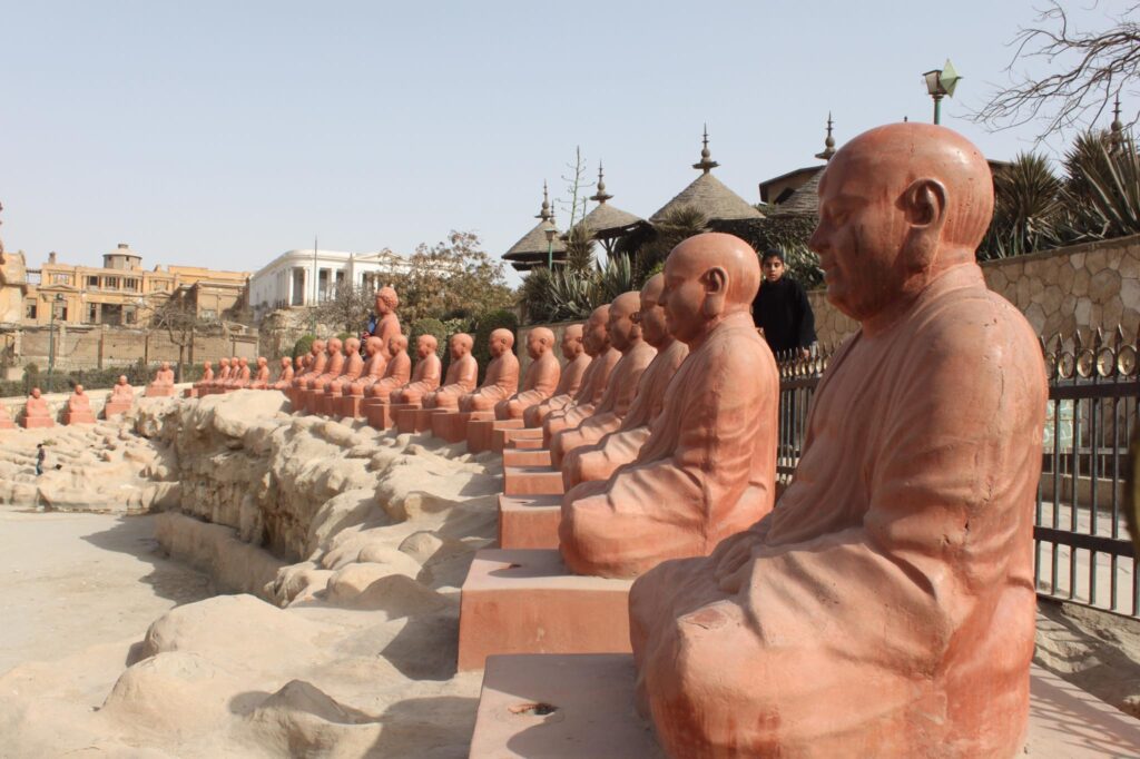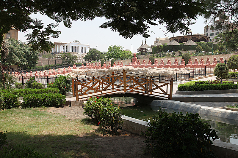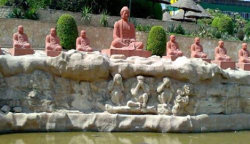 A Buddhák a show sztárjai. A mosolygó rózsaszín szobrokkal való kép elkészítése kötelező. A kert fő szökőkútjában Buddha lótuszvirágon ül, három elefánttal körülvéve. A kertben egy magas pagoda és egy nagy pavilon is található. A fő parkot rózsaszín faragott lámpások veszik körül. A kertben található még az élet arcának szobra, mely egy nő, aki félénk mosollyal lehunyja a szemét, ami a női tisztelet gondolatát tükrözi, és van egy A hármas bölcsesség szobor is, ami arra ösztönöz, hogy ne avatkozzunk be mások dolgaiba: „Nem hallok, nem látok, nem beszélek”.
